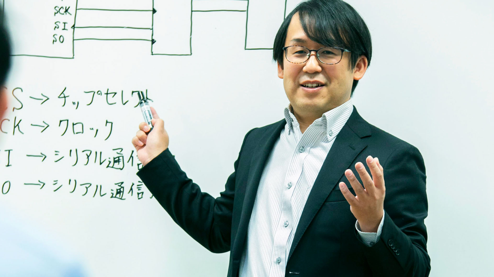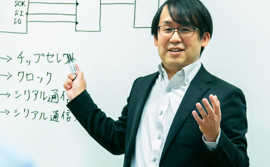 大学では電気電子回路、制御工学、プログラミングなどを学び、前職ではアナログICや自社マイコンを使用した組込み製品の設計から評価までを一貫して行っていました。オープンアップソリューションズへの転職を決めたのは、ハード・ソフト双方に関わる仕事をしており、身につけたスキルを活かしながらステップアップを目指せる会社だと感じたから。入社してからは業務に慣れるために先輩社員へ積極的に質問したり、過去の成果物を確認して勉強しながら業務を進めたりすることで前職とのギャップを埋め、ソフトウェア設計を一人で行えるようになっていきました。