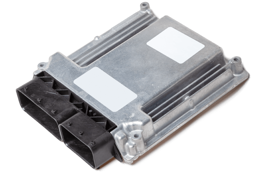 「Electric Control Unit(エレクトリック・コントロール・ユニット)」の略称で、自動車の各部品の電子制御を行うコンピューターの事を指します。電子制御と言えばヘッドライトやカーステレオ、エアコンといった電子機器がイメージされると思いますが、エンジンやトランスミッション、ステアリングのような「走る・曲がる・止まる」といった自動車本来の極めて機械的な部分も電子制御により機能しています。多いものでは1台あたり100個を超えるECUが搭載されており、自動車を動かす頭脳としてECUは今や、なくてはならない存在です。